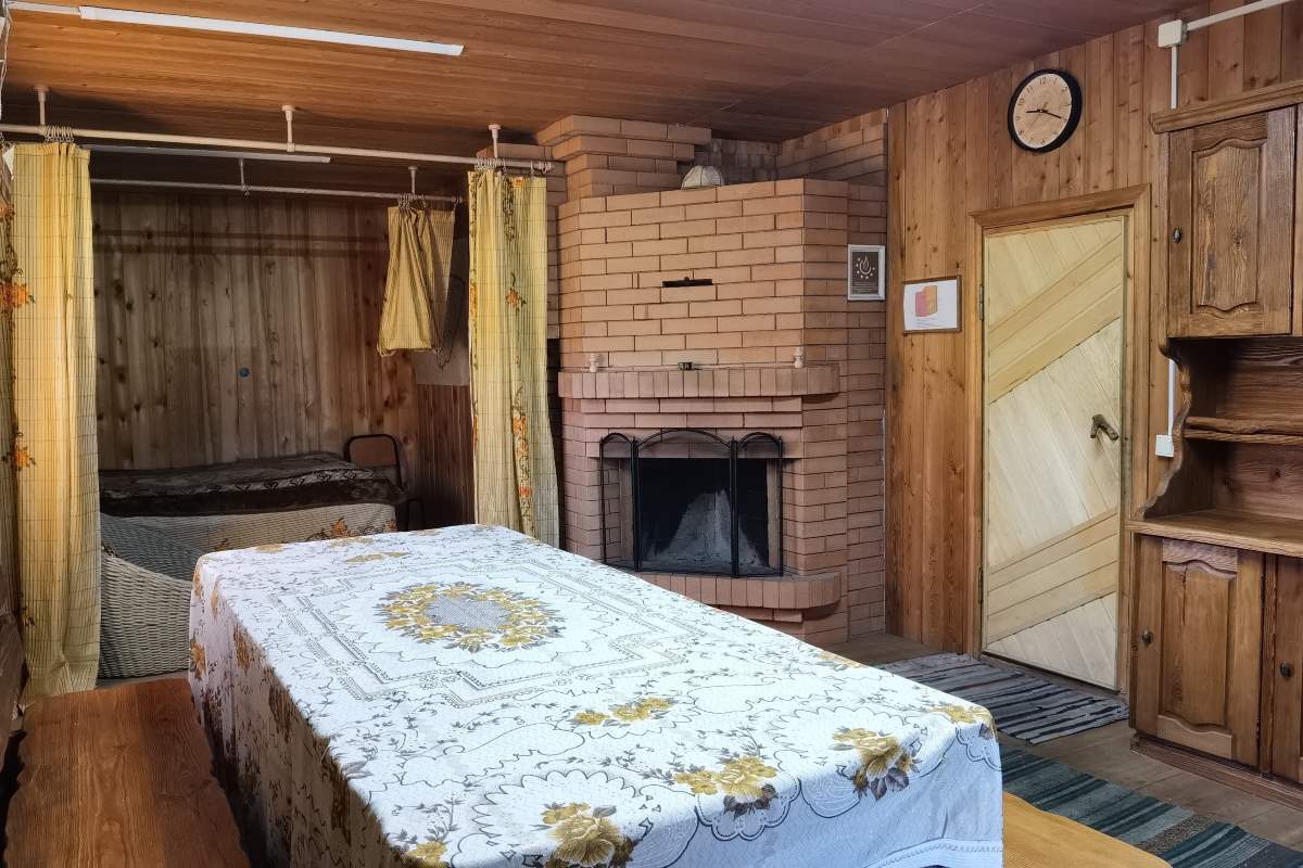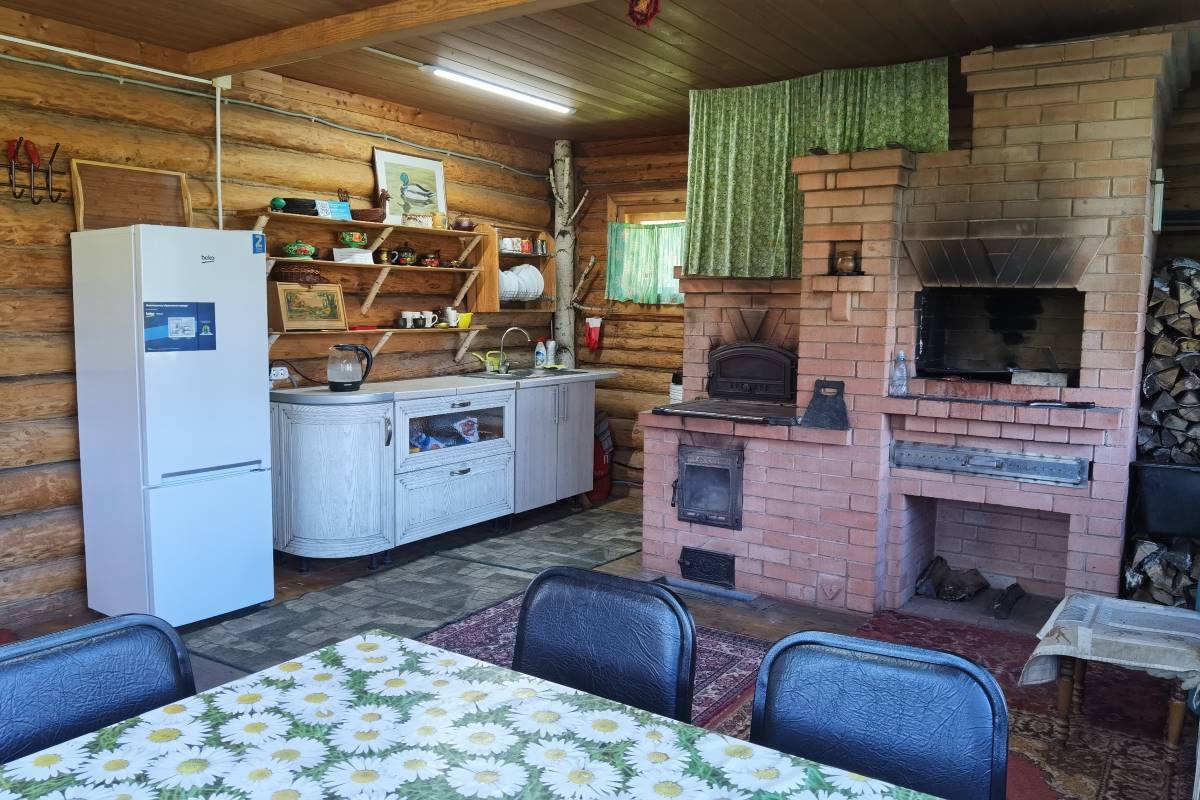 В бане есть кухня, зона отдыха с камином, помывочная, парная. Рядом с баней есть озеро.