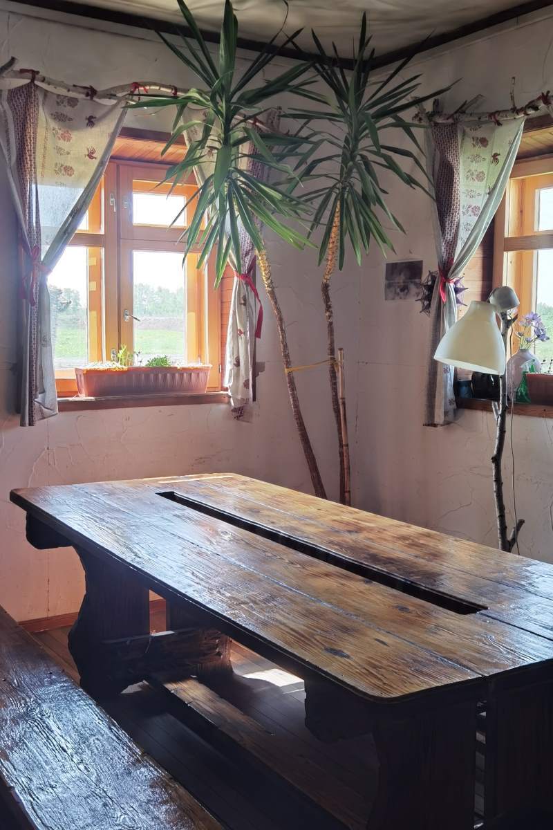 В доме может одновременно разместиться 14 человек. Есть общая кухонная зона, туалет, душ. Стоимость одного места 1000-1500 руб. в сутки.